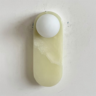 Where natural beauty meets sculptural form, the Coren Modern Stone Wall Sconce embodies serene sophistication. A softly glowing glass orb rests against a polished stone backplate, creating a harmonious dialogue between light and material. Each sconce is carved from authentic jade, its distinctive green veining and subtle translucence making every piece entirely unique. Designed for calm, considered interiors, Coren transforms natural stone into a source of luminous tranquility.