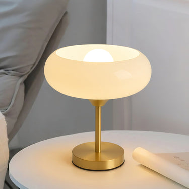 The Vita Brass Glass Table Lamp captures the timeless glow of mid-century design through a refined blend of brass and glass. Its softly curved, open-top shade emits a golden, honeyed light that feels both nostalgic and modern. Balanced on a slender brushed brass stem, this lamp serves as a sculptural accent that brings warmth, personality, and sophistication to any room.